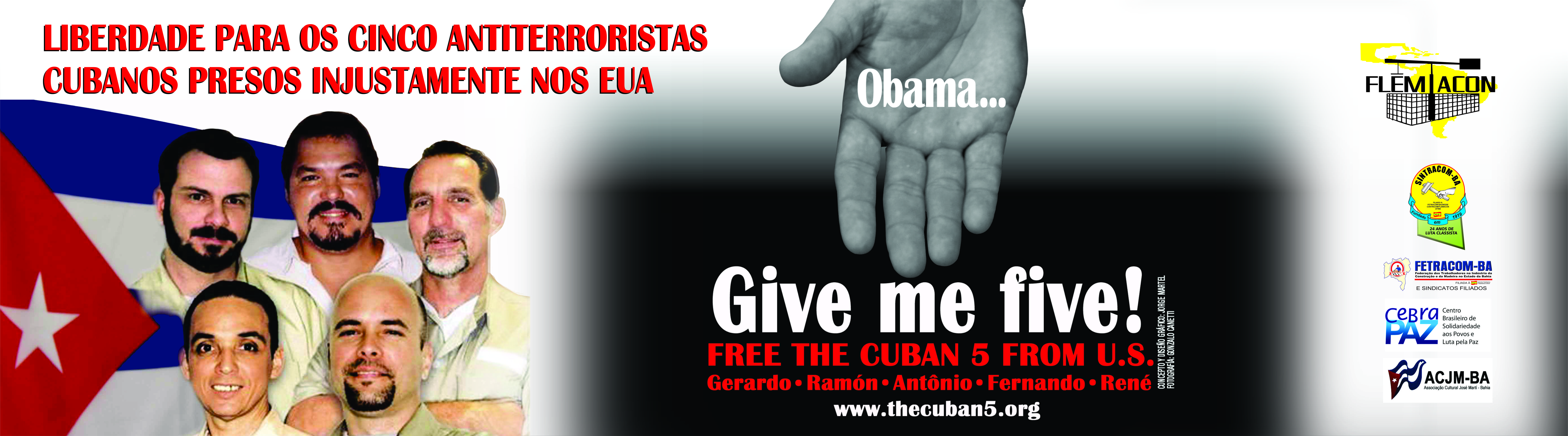 Desde o dia 5 de junho, dez ônibus de empresas diferentes circulam pelas ruas de Salvador com uma mensagem de apoio aos Cinco de Cuba. O texto do anúncio pede: “Obama, devolva os cinco” e será veiculado por 30 dias.