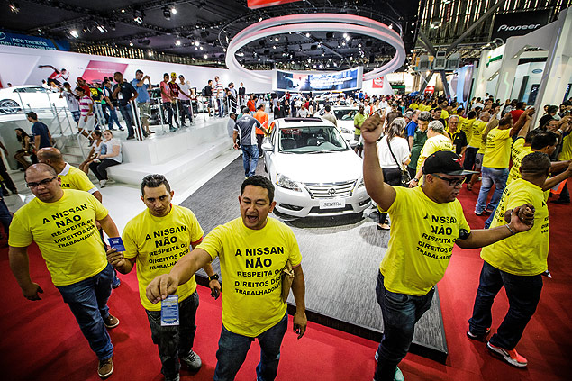 No interior do salão, representantes de trabalhadores brasileiros e estrangeiros protestavam contra a práticas antissindicais da montadora Nissan. De acordo com o secretário de Relações Internacionais da Confederação Nacional dos Metalúrgicos (CNM-CUT), João Cayres, há muitos anos os funcionários da unidade da empresa no Mississippi, nos Estados Unidos, reivindicam o direito de se associar ao sindicato da categoria (UAW), mas a empresa impede a realização de eleições livres.