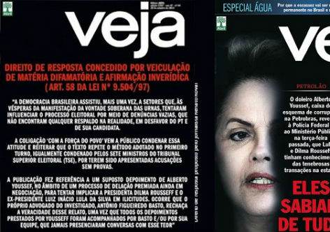 Protagonista do maior vexame editorial da história do jornalismo brasileiro, ao ser condenada a publicar direito de resposta em pleno dia das eleições por tentar golpear a democracia, Veja dobrou sua aposta na infâmia. Sua edição deste fim de semana demonstra que seus acionistas, executivos e editores perderam de vez a noção do ridículo.