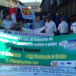 “O que esse governo ilegítimo quer é retomar a obra neoliberal inconclusa de FHC, que nós conseguimos interromper com a eleição de Lula. Esse Congresso, que é o mais conservador na história do Brasil, quer impor o mais grave, profundo e inédito retrocesso político e social”, denunciou o presidente da CTB, Adilson Araújo, de cima do carro de som. “Devemos resistir com todas as forças, temos que manter o empenho de esclarecimento e conscientização das bases sobre esta brutal ofensiva, em contraponto à descarada manipulação dos fatos pela mídia burguesa e golpista”, continuou.