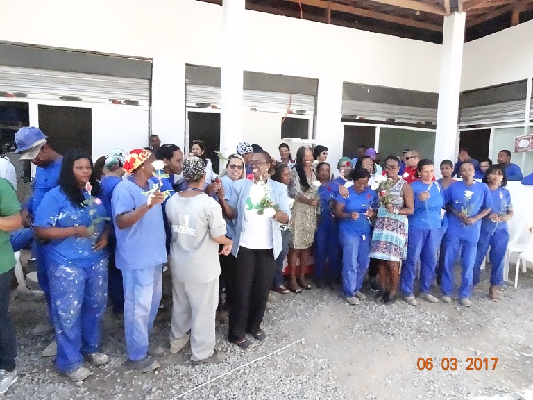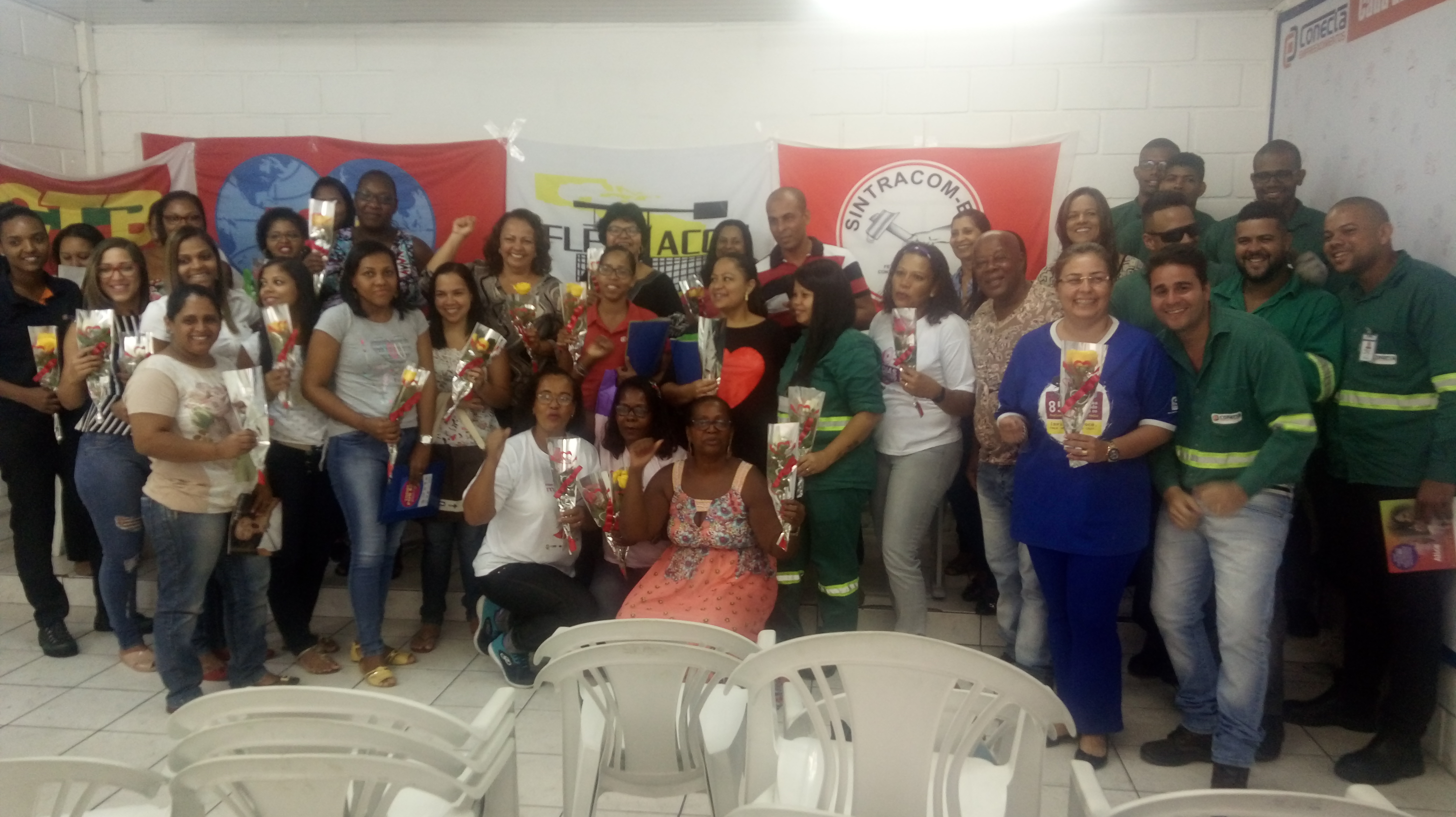 No local 20 mulheres foram homenageadas pelo mês dedicado a elas e por sua importância dentro do canteiro de obras. Na ocasião, que contou com a participação de membros das diretorias da FETRACOM-BASE e SINTRACOM, foram expostos temas como Reforma da Previdência; direitos conquistados pelas mulheres nas CCTs da construção; as pautas das mulheres na mesa de negociação de 2017, sobretudo no tocante à valorização da mão de obra feminina, onde a diretoria da FETRACOM-BASE pede que a função de rejuntadora seja reconhecida como operária qualificada.