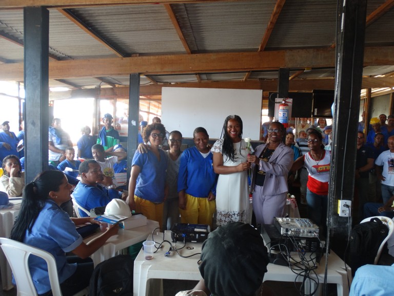 Na frente de obra da empresa Conecta Empreendimentos, terceirizada da Coelba, a atividade realizada no dia 13/03 contou com a participação de da vereadora Aladilce, presidente da Comissão de Defesa dos Direitos da Mulher – CDDM, que falou sobre a conquista de direitos da mulher no município de Salvador; a lei da Maternidade Certa e direitos civis e cidadania da mulher.