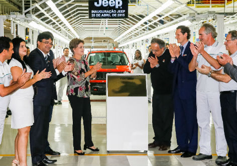 A presidenta Dilma Rousseff participou nesta terça-feira (28) da inauguração do Polo Automotivo da Jeep, em Goiana, Pernambuco, empreendimento do grupo Fiat Chrysler Automobiles (FCA). O empreendimento recebeu investimentos de mais de R$ 7 bilhões, sendo R$ 3 bilhões apenas na fábrica da Jeep, que empregará nove mil pessoas, sendo 82% nordestinos e 78% pernambucanos.