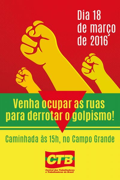 Os movimentos sociais organizados na Frente Brasil Popular irão mais uma vez às ruas na próxima sexta-feira, 18 de março, em centenas de cidades brasileiras manifestar-se em defesa dos direitos sociais, da democracia e contra o golpe. Em Salvador, a Frente está convocando uma grande caminhada pelas do Centro da cidade, com concentração a partir das 15h. no Campo Grande.