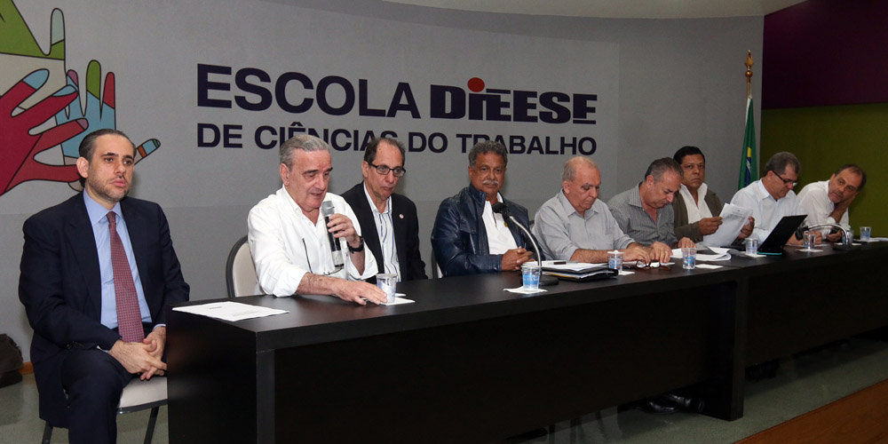 CTB, CUT, Força Sindical, UGT e CSB se reuníram nesta segunda-feira (9) no sede paulista do Departamento Intersindical de Estatística e Estudos Socioeconômicos (Dieese) para discutir a possibilidade de um pacto nacional em defesa do desenvolvimento econômico brasileiro. Além das Centrais, estavam presentes na plenária diversos representantes da indústria da construção civil e da engenharia naval, líderes de órgãos da sociedade civil organizada e representantes da Federação Única dos Petroleiros. A apreensão com o clima de instabilidade apresentado pelo país, assim como uma agenda para revertê-lo, foram expressados no documento “Recuperar e Fortalecer os Empregos no Brasil”.