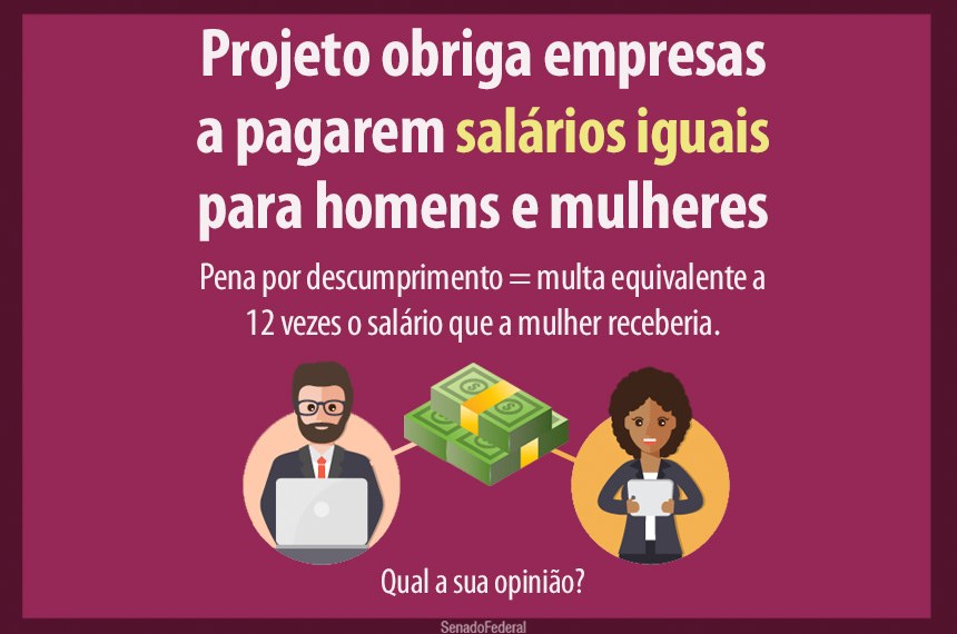 O projeto prevê multa equivalente a 12 vezes o salário que a mulher deveria receber no caso do descumprimento da regra.