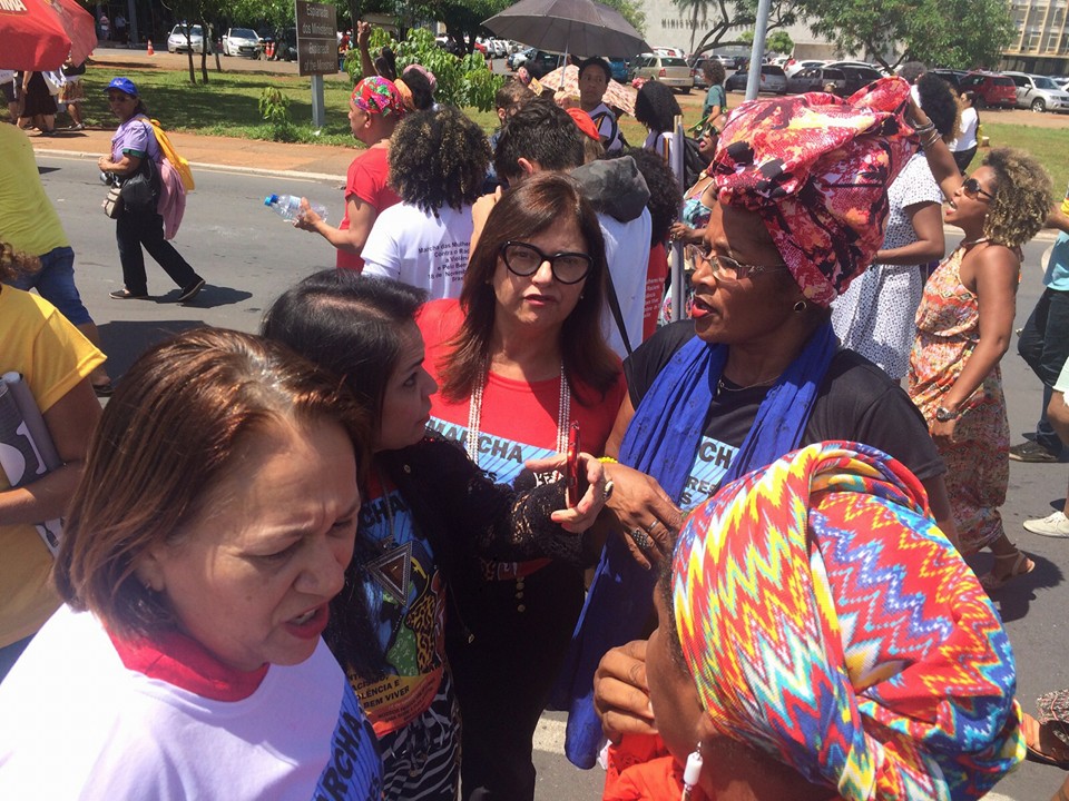 Manifestantes pró-impeachment e regime militar, acampados em frente ao Congresso, tentaram tumultuar a Marcha com ataques racistas e de violência. Um policial civil do Maranhão, integrante do grupo acampado, disparou três tiros para o alto e acabou detido pela Polícia Militar. O homem teve um revólver calibre 38 apreendido.