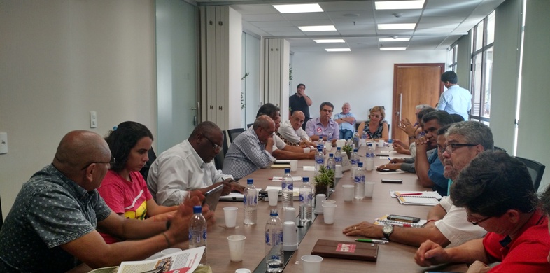 A luta contra o PLS 555 – Projeto de Lei do Senado que cria a Lei de Responsabilidades das Estatais baseado em medidas que favorecem a privatização – foi intensificada com a votação da proposta prevista para esta terça (16). Ontem (15), o Comitê Nacional em Defesa das Empresas Públicas se reuniu em Brasília para discutir a agenda de mobilizações e definir estratégias para impedir que o projeto avance no Congresso. A reunião ocorreu na sede da Federação Nacional das Associações do Pessoal da Caixa (FENAE). O Comitê, composto por cinco centrais sindicais – CTB, CUT, Intersindical, CSP-Conlutas, Nova Central e entidades, como a Federação Única dos Petroleiros (FUP), fez um balanço de sua atuação e organizou, para amanhã, uma intensa manifestação no Senado, a fim de impedir a aprovação do projeto, que tramita em regime de urgência na Casa.